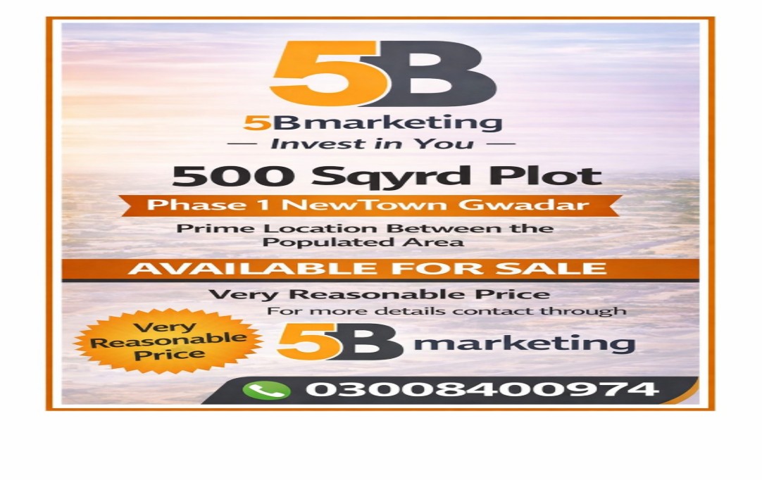 New Town Gwadar is gaining attention due to ongoing development projects and its proximity to key commercial and residential zones. With increasing demand and infrastructure growth, property prices are expected to rise steadily, making this an ideal time to invest. Whether you plan to build your dream home or hold the property for long-term returns, this 500 sq yards plot offers security, growth, and a valuable asset in Gwadar’s expanding real estate market.
